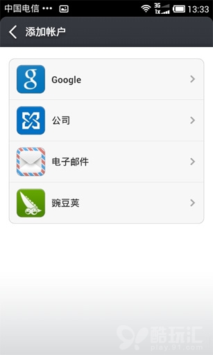 如果你一開啟 Google Play Store 就立馬閃退,那是因為你的 Android 設備沒有內置谷歌服務框架。谷歌服務框架的安裝請移步到《Android入門教程:Google 服務框架的安裝》,成功安裝後,我們有個簡單的驗證方法:打開系統設置--賬戶與同步,點擊先建賬號,查看列表裡是否有 Google 選項。