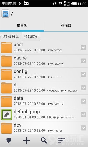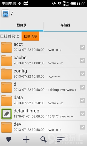 1. 打開 RE 管理器(初次啟動會提示獲取 Root 權限,點擊確認即可),點擊右上角的“掛載讀寫”按鈕。
