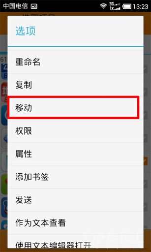 2. 進入 DATA/APP 目錄,找到 com.android.vending-1.apk 文件。長按激活二級菜單,點擊“移動”選項,進入到 SYSTEM/APP 目錄,點擊左下角的“移動到此處”按鈕。
