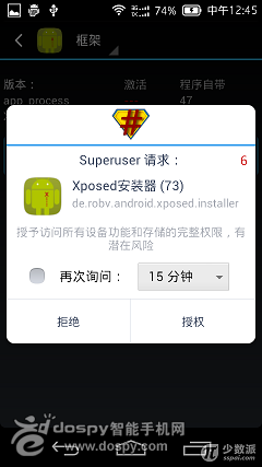 點擊後進入框架安裝、升級界面,我們點擊“安裝/更新”,會出現ROOT授權提示,許可即可。這裡小編給大家個提醒,為了Xposed 框架及以後各種模塊的良好運行建議使用好的授權管理,目前各種一鍵ROOT生成的各種授權管理程序可能無法滿足Xposed 框架及以後各種模塊的需求。建議使用SuperSU Pro。Xposed 框架安裝完成後重啟手機才能激活,可直接點擊重啟也可手動重啟。