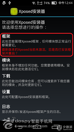 Xposed 框架安裝器可以看成是個Xposed 框架的管理工具,在這裡可以安裝、更新Xposed 框架,也可以卸載Xposed 框架,查看安裝日志。也可設置Xposed 框架安裝器是否聯網更新框架及模塊。