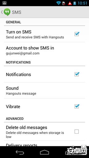 hangouts更新後,現在已經支持接收和發送短信了,此外還支持語音和視頻聊天。如果你不想要hangouts接管短信的話,可以關閉它,下面就是操作簡單的方法步驟了: