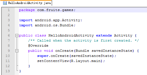 HelloAndroid源碼在反編譯前後的對照如下: