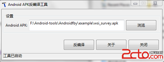 首先,下載上述反編譯工具包,打開Androidfby目錄,雙擊Android反編譯工具.exe,就可以浏覽打開要反編譯的apk