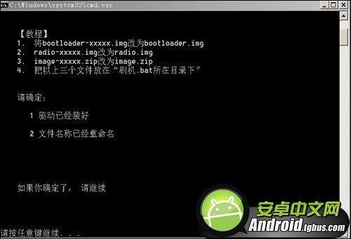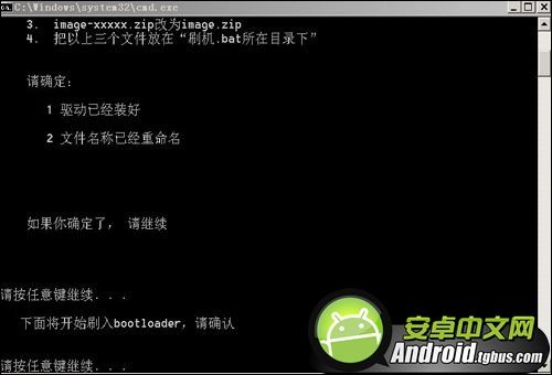 7、此時我們根據提示:下面將開始刷入bootloader,請確認,這時我們按任意鍵繼續: