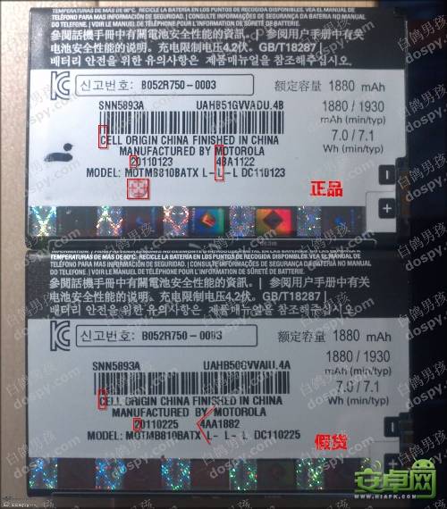 眾所周知,Atrix 4G的電池型號為BH6X,我們首先從背面看看真假原裝電池有何區別(點擊圖片可看高清晰大圖):