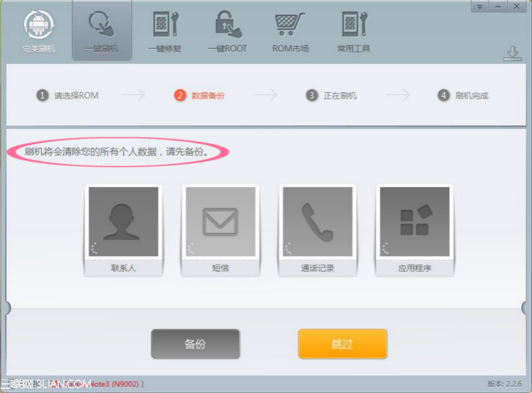 完美刷機軟件擁有備份數據資料的功能,請在“是否需要備份數據”提示前打鉤!