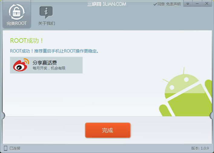 完美ROOT軟件頁面滾動顯示三星note3怎麼root,當彈出“ROOT成功”頁面後,直接點擊“完成”,三星note3 n9005一鍵root成功了!手機重啟成功後,馬上查找應用程序列表新增加的SuperSU圖標哦!
