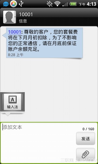 選擇了百度輸入法後,我們還不能使用百度輸入法打字,還需要一步簡單的設置。進入到可以輸入的界面,例如短信,然後長按輸入框(大概3秒),然後松手,會看到有輸入法的提示,點擊輸入法,然後就可以看到我們剛才安裝的百度輸入法了,選擇百度輸入法,即可使用百度輸入法來打字了,如下圖