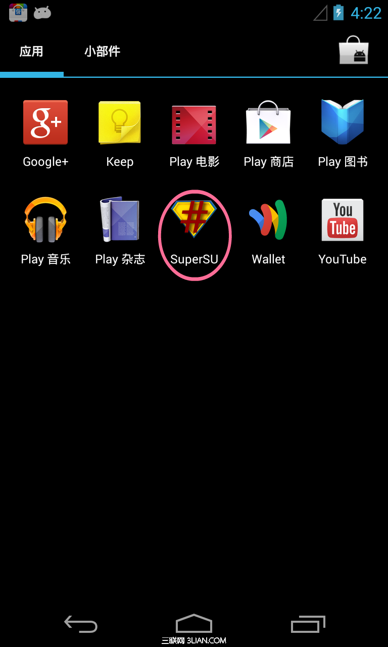 成功獲取nexus4 4.3 root權限後,應用程序列表新增SuperSU的圖標,這是谷歌nexus4 root成功的標志,如下圖。
