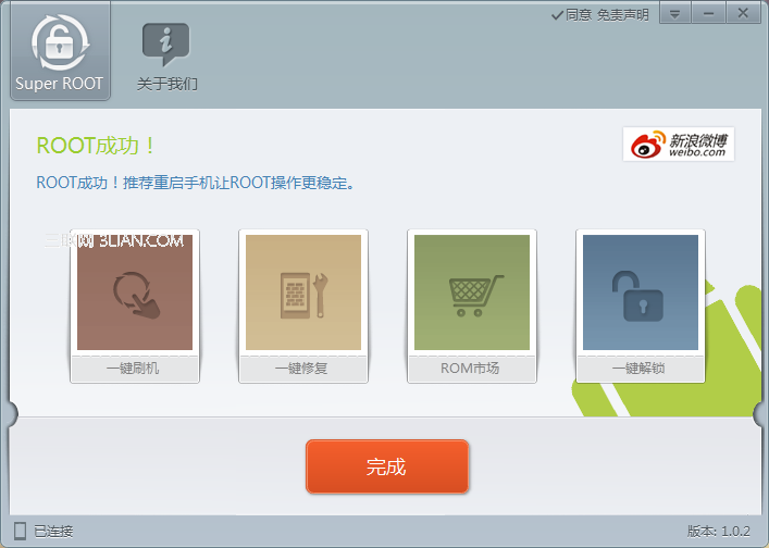 另外三星7100 root結束可以直接通過“完成”頁面進入刷機、修復和解鎖等操作(見圖三),快來體驗吧!