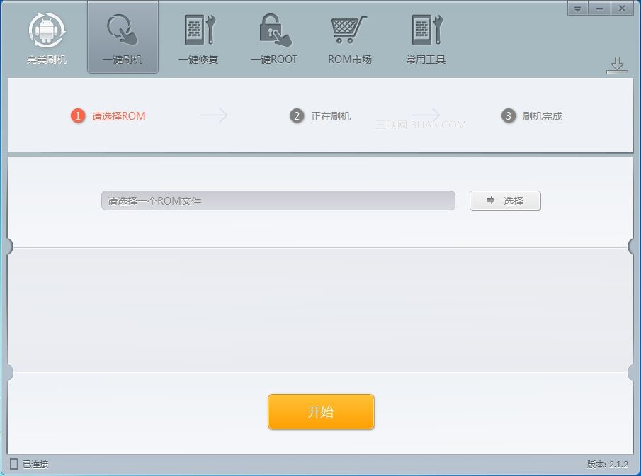 二,自己先行下載ROM ,然後導入ROM包刷機,點擊浏覽選擇下好的本地ROM包導入,再點擊開始刷機按鈕進行刷機了。