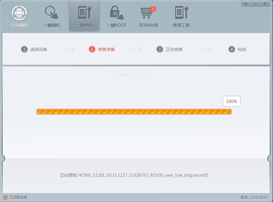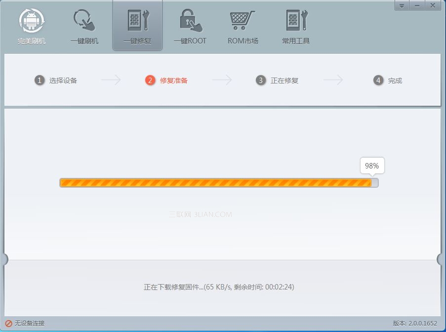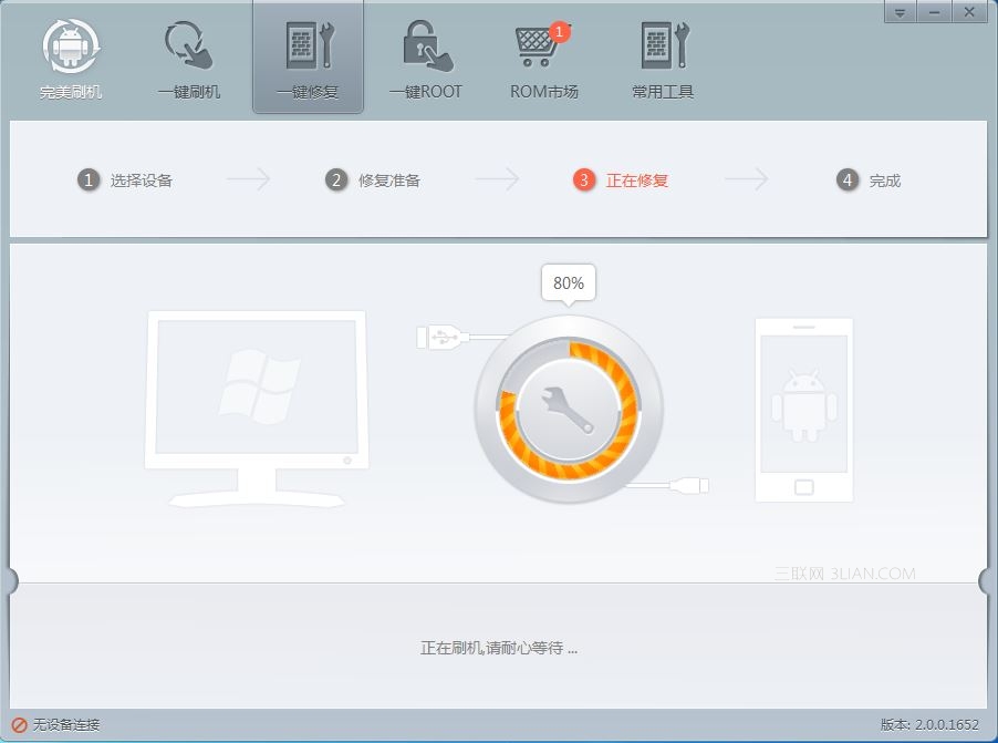 刷下載好的修復固件同刷機一樣,耐心等著軟件運行,不要對手機和電腦做任何額外操作。