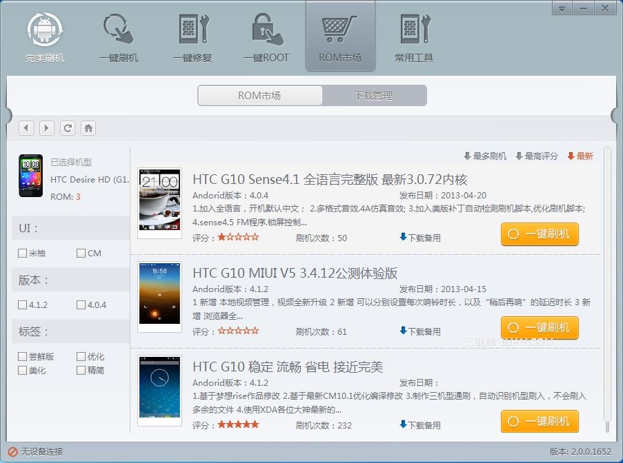 其三,到ROM市場,條件選擇ROM包刷機,可以根據型號,系統版本,進行選擇。
