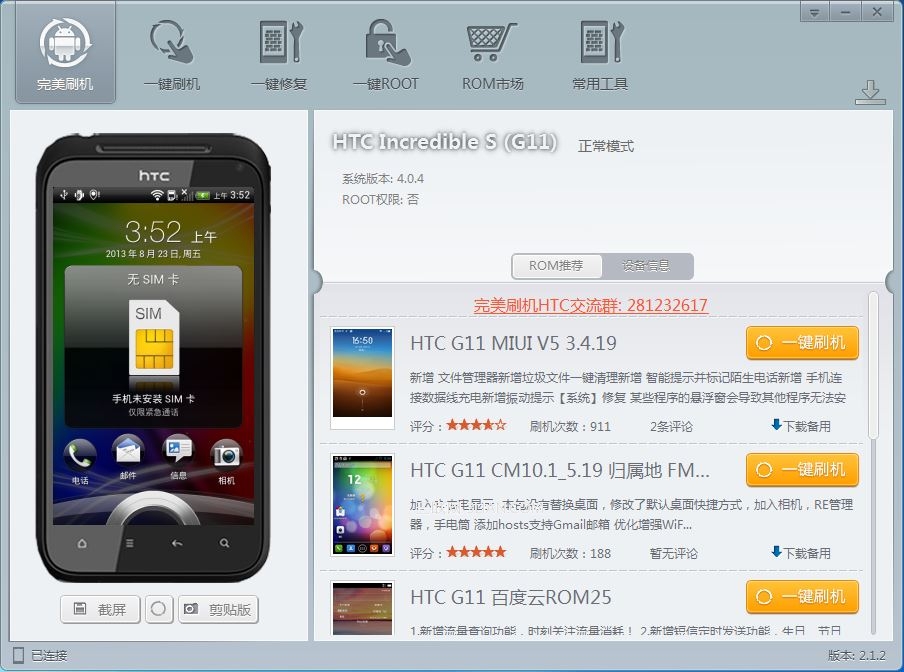HTC G11刷機教程,讓我們了解到真正的一鍵刷機。完美刷機這簡簡單單的操作,讓用戶使用起來更加方便快捷,真正做到了HTC Incredible S一鍵刷機功能的軟件。
