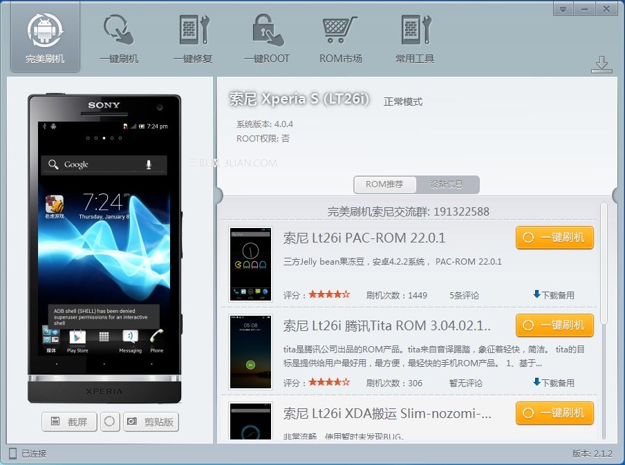 很多機油都對索尼LT26i 刷機一知半解的,網絡上的教程有的復雜,有的簡單,然而真正的一鍵刷機還是接下來要講到的索尼Xperia S刷機教程。簡單的來說,就是使用完美刷機軟件進行索尼LT26i 一鍵刷機。那麼,接下來就看看這篇索尼刷機教程吧。
