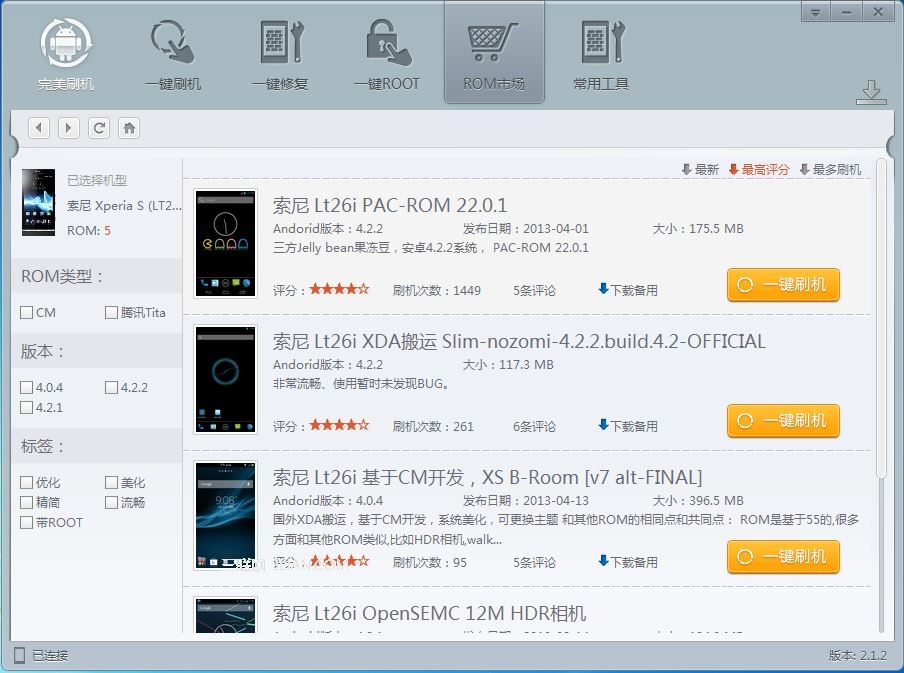 ROM市場選擇刷機