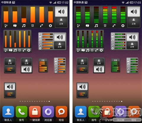 如果你依然不滿足,OK,點擊應用主界面右下角的按鈕,這裡有更多設置選項。鎖定媒體或鈴聲音量,更改音量條和桌面組件的顏色等等,通過這裡的設置都能完成。