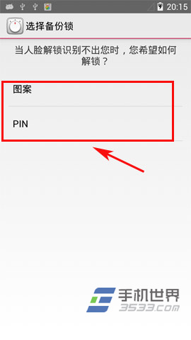 5)大家只需要選擇一種備份解鎖方式進行設置即可,但筆者建議備用解鎖方式盡量使用圖案解鎖比較適合。(如下圖所示)