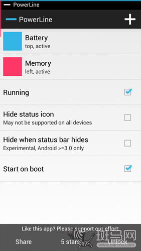 可以安裝桌面工具是安卓系統的一大優勢,我們可以在桌面上擺上各種工具隨時監視手機的狀況,但是這樣桌面又會非常混亂,看上去很不整潔,今天向大家推薦一款APP《PowerLine》,可以把這些通知從桌面、通知欄中解放,將手機的狀態以細線的方式展示出來,既直觀又漂亮。