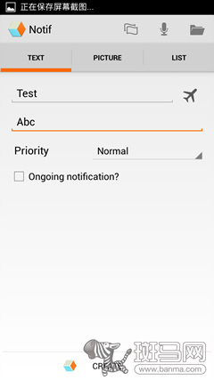 我們先一起來試試文字通知,輸入標題和內容以後,點擊下方的“CREATE”按鈕就可以創建通知了。除了這些基礎設置以外,《Notif》還可以死為通知添加圖標和有優先級。還可以通過勾選“Ongoing”,讓這條通知常駐在通知欄中,不會被批量清除消去。