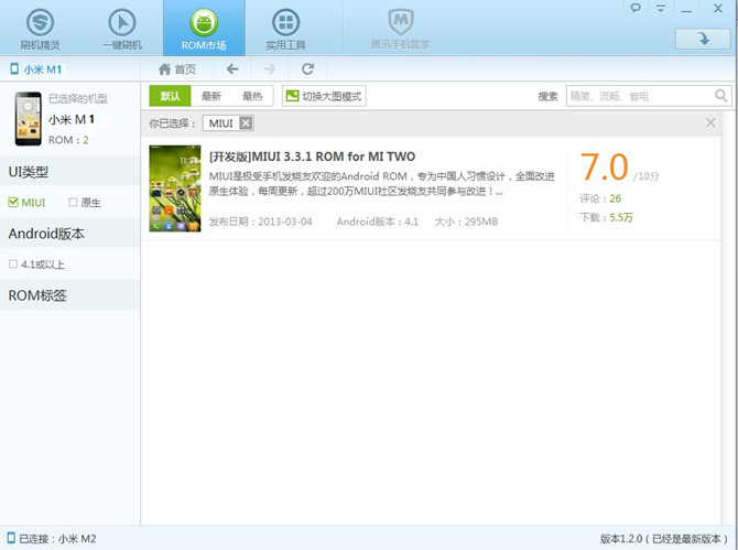 • 進入ROM市場選擇左側標簽錘子ROM,找到相應的ROM,點擊高速下載,通過右上角可以查看到下載詳情