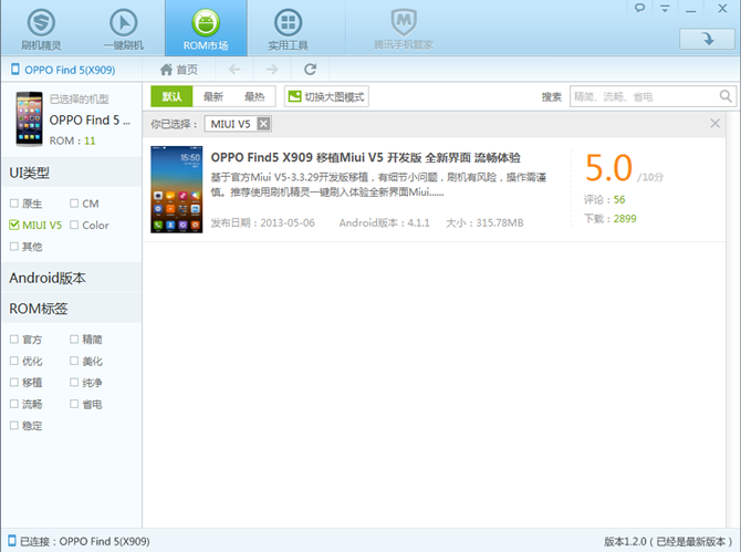 • 進入ROM市場選擇左側標簽錘子ROM,找到相應的ROM,點擊高速下載,通過右上角可以查看到下載詳情