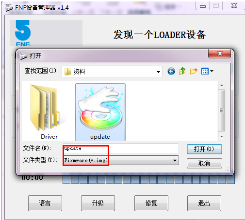 •打開選擇,選擇一個img的刷機固件,點擊打開