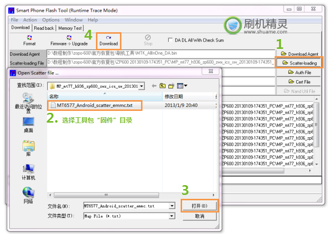 • 運行 “刷機工具“ 目錄下的 Flash_tool.exe