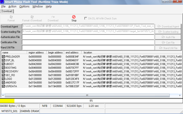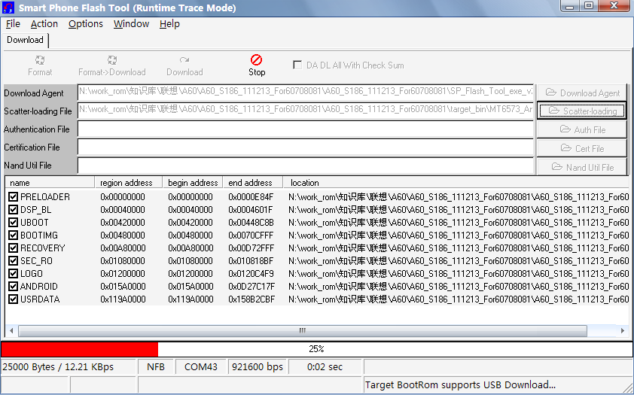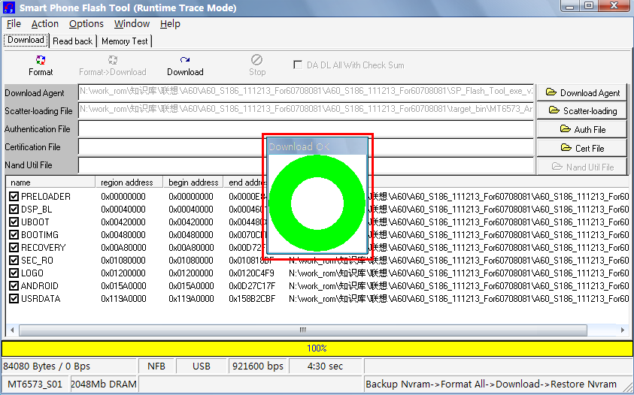 設置完成Scateer file文件後,單擊Download 即可進入下載,進度條開始滾動,下載過程包括5個階段。