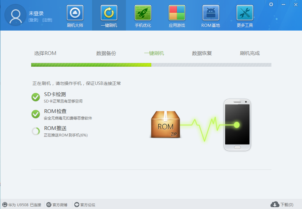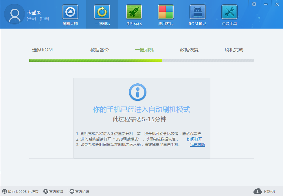 點擊一鍵刷機,接下來唯一要做的事就是坐等,刷機途中請不要拔掉數據線。