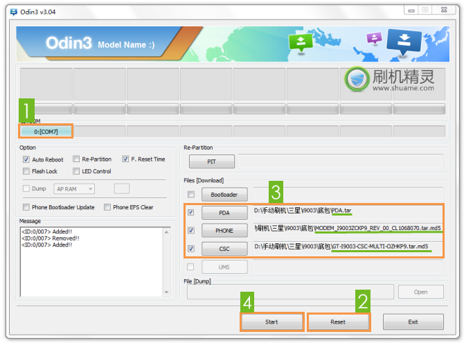• 將工具包解壓後,運行 Odin(刷機工具).exe