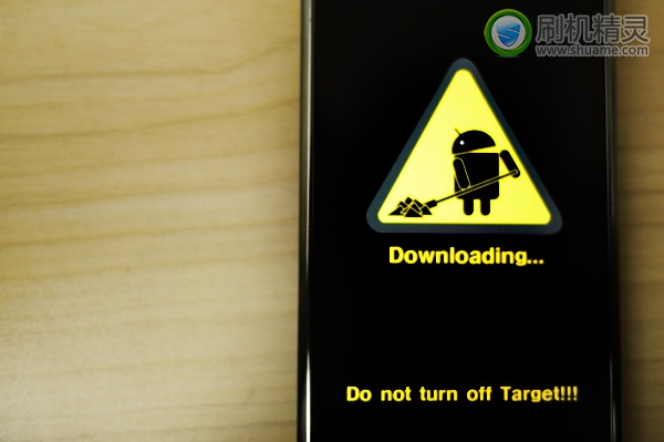 關閉手機,同時按住Home鍵+音量下鍵+電源鍵進入Download Mode(挖煤模式)