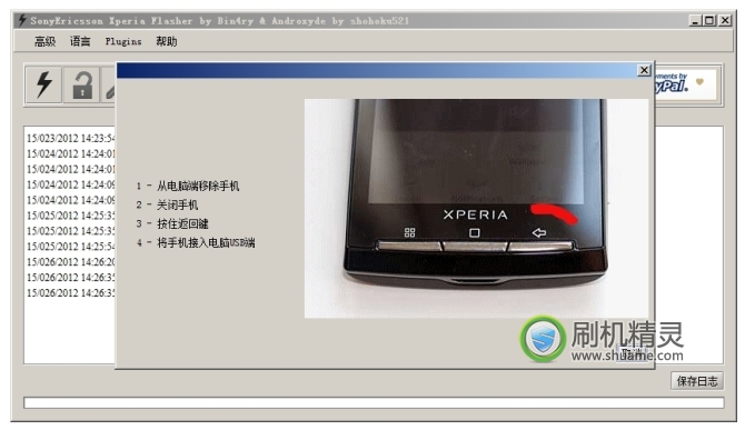 按住音量下鍵, 再插入數據線,連接成功後,下圖提示框會自動消息,開始刷機!