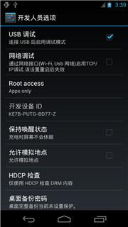 部分4.0以上版本的ROM需要打開ROOT授權,具體打開方式是: