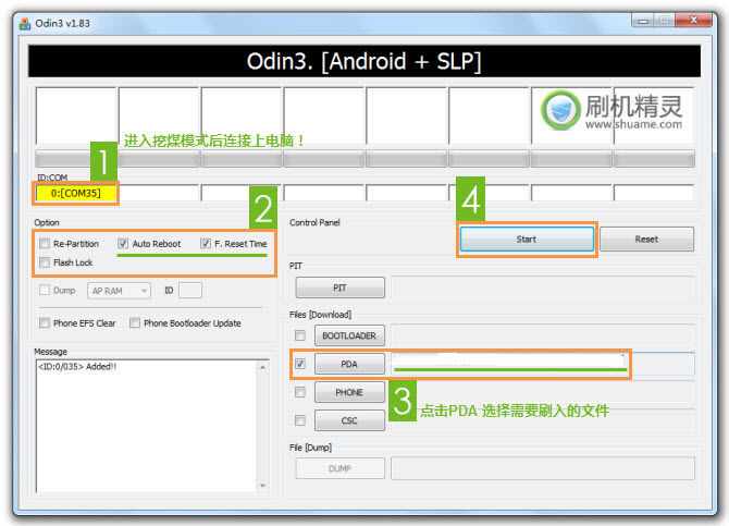 • 再按一下 音量上鍵 進入如下界面的挖煤模式!再將手機連接上電腦