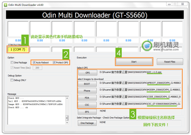 • 手機會進入挖煤模式,再運行刷機工具內的 Odin Multi Downloader v4.60.exe