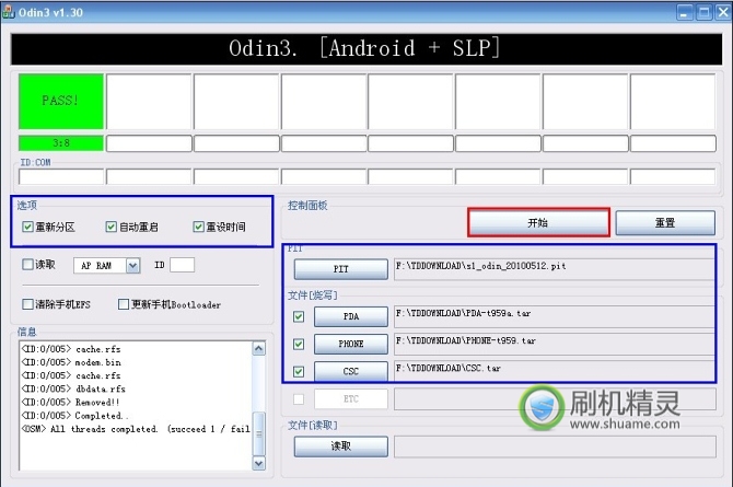 ----「運行解鎖工具包中的Odin3 v1.30.exe」