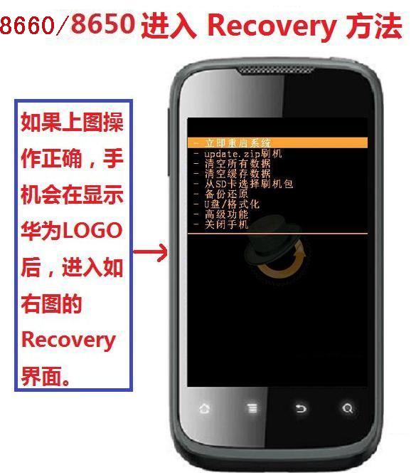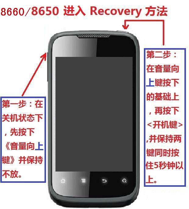 4. 按音量鍵上 和 開機鍵,進入 recovery