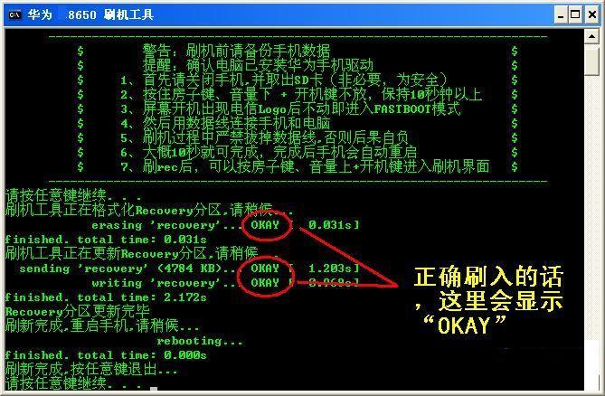 5. 運行第一步解壓縮後的文件夾裡面的 “雙擊刷入Recovery.bat”, 開始刷Recovery,大概10秒左右就刷完了。