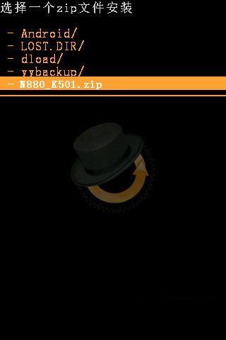 (4)選擇“從SD卡選擇zip文件”確認進入下圖,並選擇要升級的ROM進行確認。