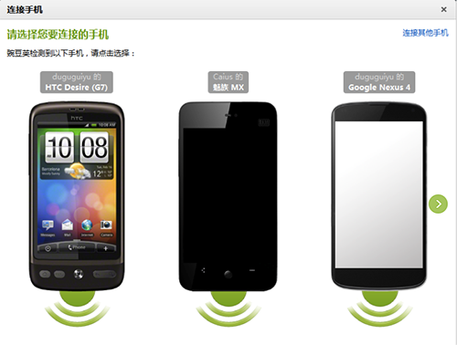 STEP 4:此時「豌豆莢連接向導」會提示「正在連接您的手機,請稍候…」;之後您的手機便與豌豆莢建立了Wi-Fi連接。