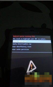 選擇"wipe data/factory reset"那一項,然後點屏幕左下角的OK,這時會提示你"yes"還是"no";選"yes"那一項然後再按ok 就會如下圖開始wipe: