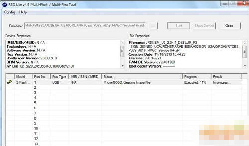 點最上面的按鈕(上圖的紅圈處),選擇一個sbf文件,也就是要刷的rom文件,然後點Start開始刷機。