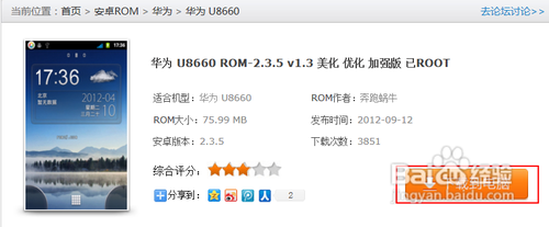 從網上下載華為U8660ROM刷機程序包。下載完成後文件類型為壓縮文件,使用時無需解壓。