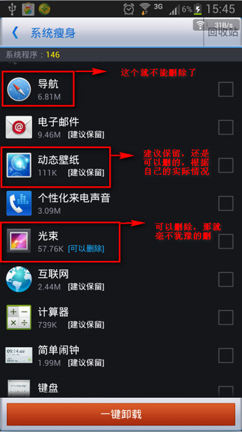 注意:其實系統軟件也不是很占什麼空間,也沒必要為了精簡,把他們都刪了。刪除系統軟件對手機本身多多少少還是有影響。刪除還是慎重!