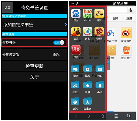 上網浏覽網頁的時候,如何便捷的收藏經常訪問的幾個網址?奇兔衛士貼心設置了“奇兔書簽”這一小插件,點擊安裝後,我們可以將自己平常經常訪問的幾個網址收藏在書簽裡,這樣不管我們使用什麼浏覽器,拉開左側欄的“奇兔書簽”就能便捷的訪問收藏的網址,讓我們浏覽網頁更加方便!