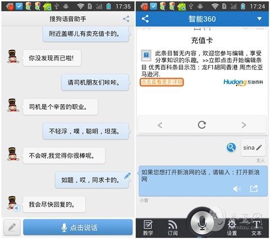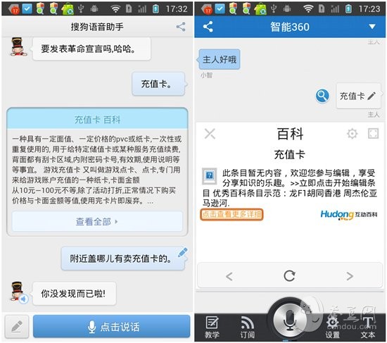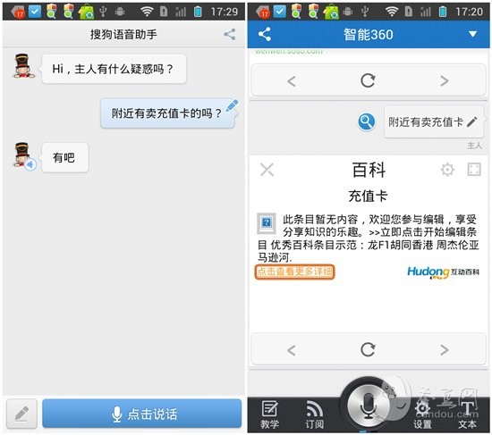 首先當然就是普通話了。《搜狗語音助手 Beta版》和《智能360-語音助手》都能聽出小編講的這句“附近有賣充值卡的嗎”,不過兩個語音助手都沒能給出小編所在地區附近哪有賣的。