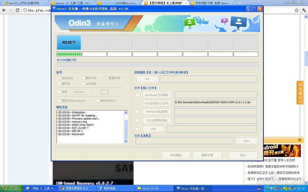 3、選擇PDA內核文件CF-SGS3-CWM-v5.5-v1.2.tar,PC准備完畢。