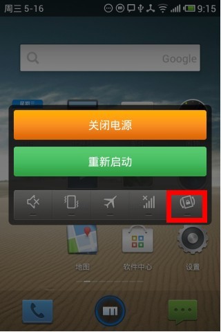 打開重力感應:長按電源鍵後彈出關機界面,下排最右邊的圖標就是重力感應